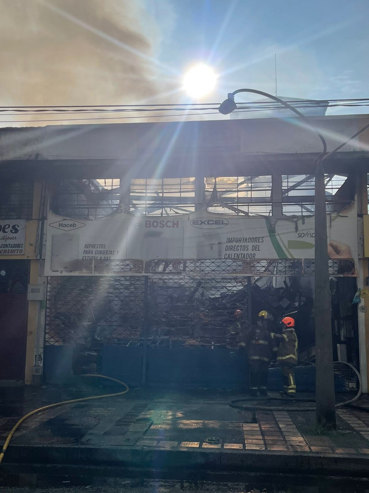 La conflagración se presentó en dos locales comerciales que venden suministro para mantenimiento de gas y las llamas se generaron por unos aerosoles, informó el DAGRD.