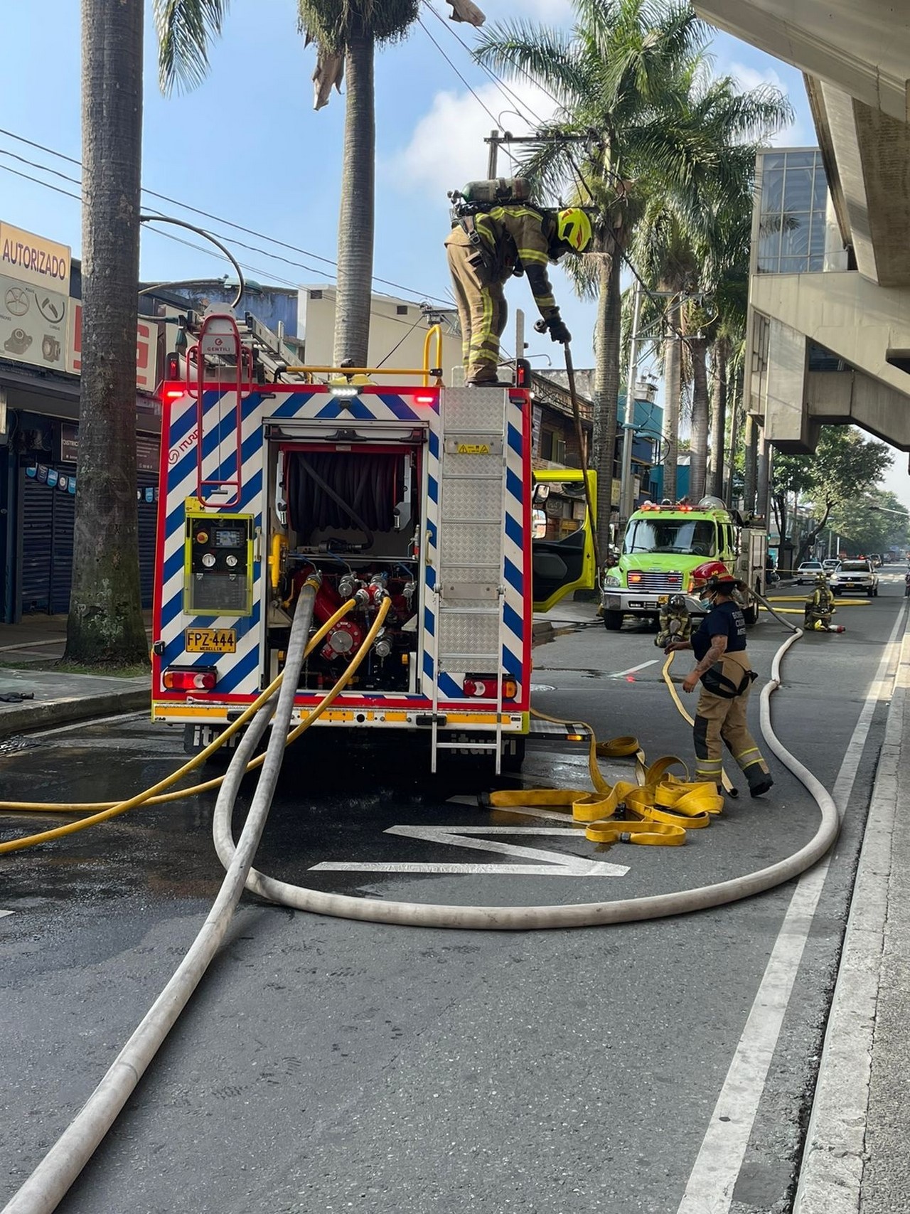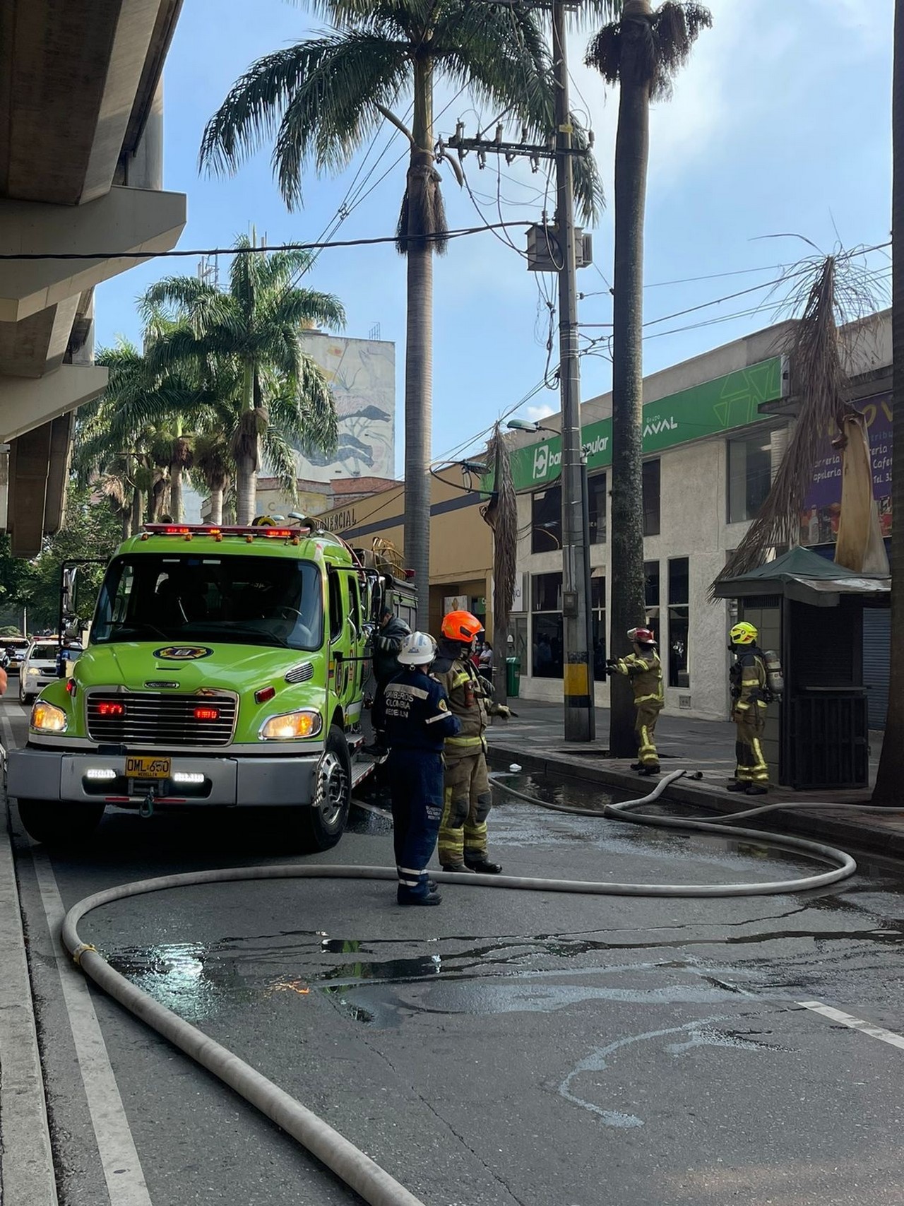 La situación se encuentra controlada en un 95% y nuestros #BomberosMedellín realizan labores de enfriamiento y remoción. pic.twitter.com/zMZcOrTzjs