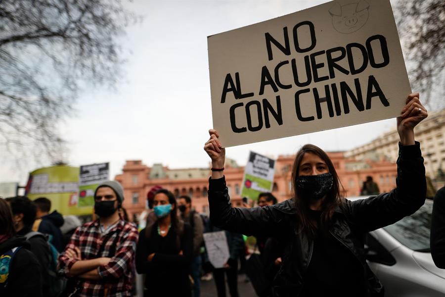 También protestaron en contra de las políticas que promueven los negocios agroindustriales y de los acuerdos para la cría intensiva de cerdos con destino a la exportación de carne porcina a China.