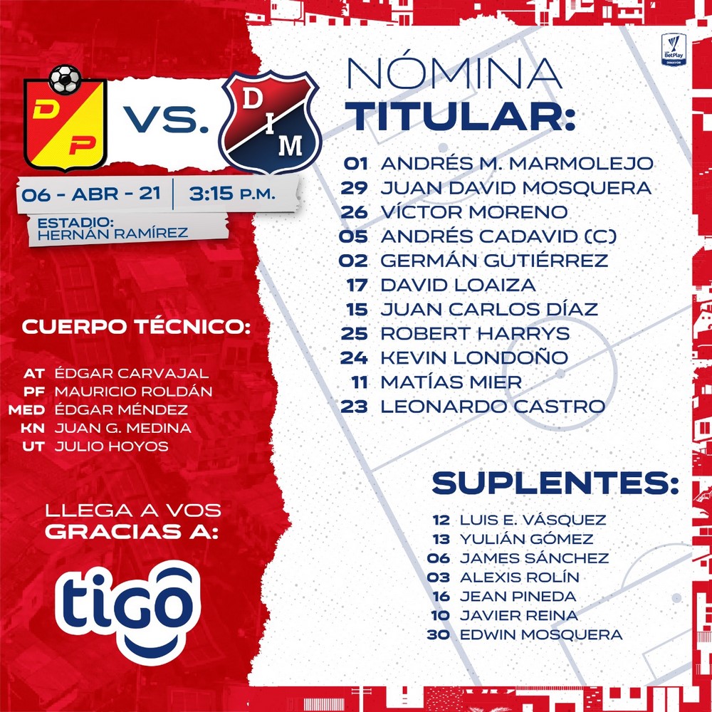 Minuto30.com- Deportivo Independiente Medellín se enfrentará este martes a partir de las 6:00 de la tarde con Deportivo Pereira, en desarrollo de la fecha 17 de la Liga BetPlay I-2021.