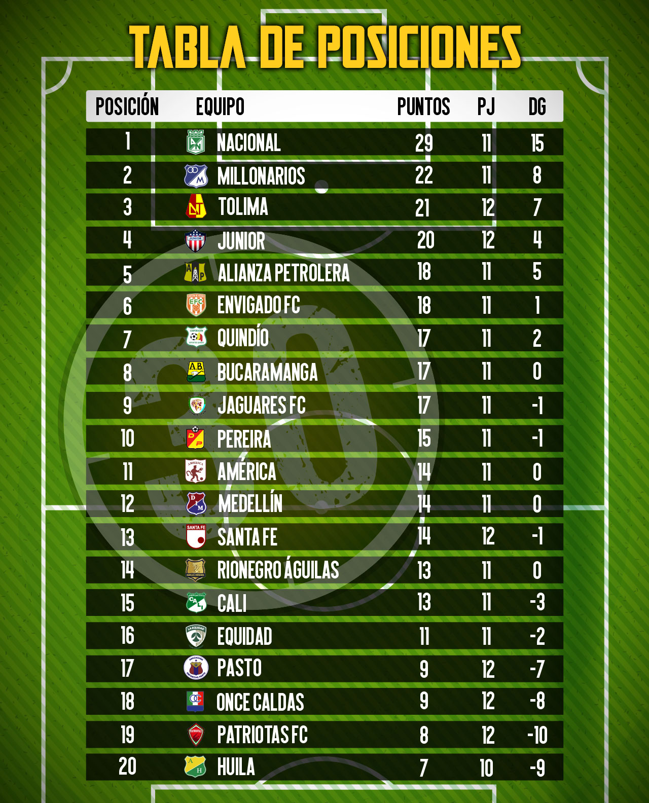 Previo a los partidos de sábado y domingo, ‘El Poderoso’ aparece en la casilla 12 de la tabla de posiciones, con 14 puntos.