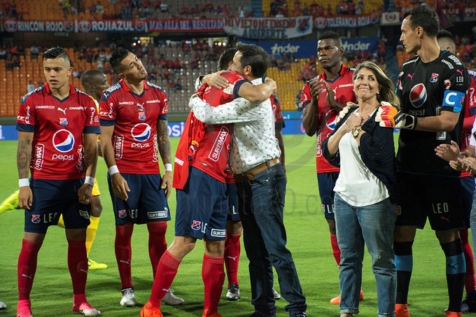 Visiblemente conmovidos se mostraron los jugadores del Deportivo Independiente Medellín durante el homenaje que le realizó el club a uno de sus personajes más queridos, el expresidente de esa institución, Javier Velásquez.