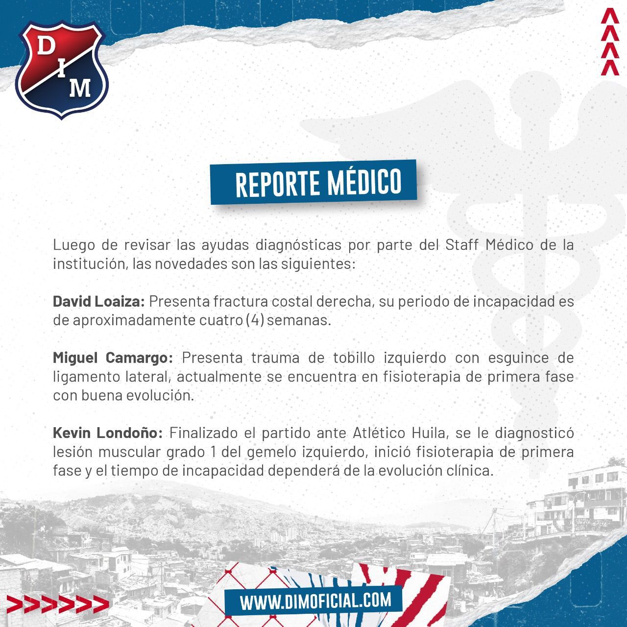 Deportivo Independiente Medellín dio a conocer este martes en la mañana un reporte médico en el que se hace alusión a tres de sus jugadores.