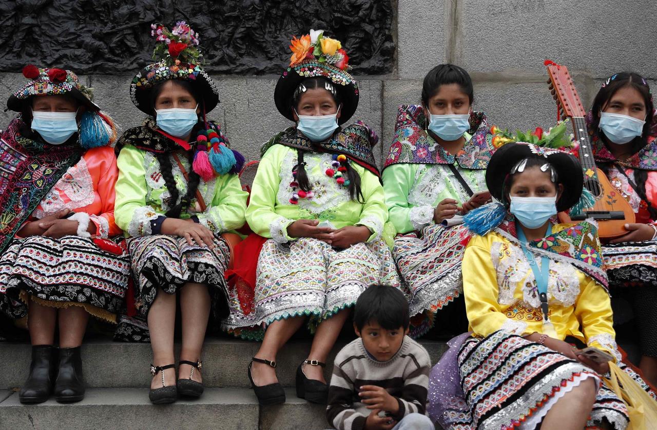 Fotografía de archivo, tomada el pasado 15 de octubre, en la que se registró a un grupo de indígena peruanos, durante una marcha por la igualdad, en Lima (Perú). EFE/Paolo Aguilar