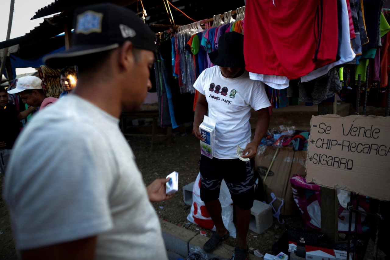 Un hombre vende cigarros a personas migrantes en la comunidad de Bajo Chiquito, el 10 de marzo de 2023, en Darién (Panamá). EFE/Bienvenido Velasco