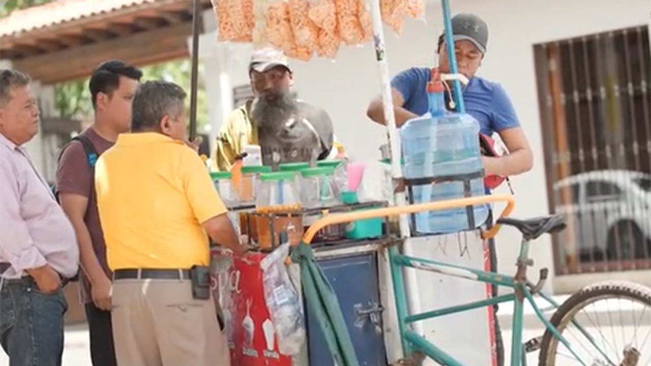 El tiktoker comenzó hacer preguntas insistentes al dueño del puesto de raspados. El dueño le dijo que le daría comida; pero el ‘indigente’ no paro de hacer preguntas y le pidió que si le podía vender el puesto de raspados.