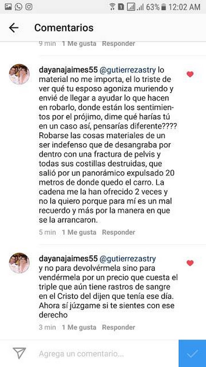 Según Publimetro, Dayana Jaimes, la esposa del fallecido cantante Martín Elías, reveló que personas inescrupulosas estarían feriando la cadena de oro que el cantante llevaba el pasado 14 de abril, el día en el que murió.