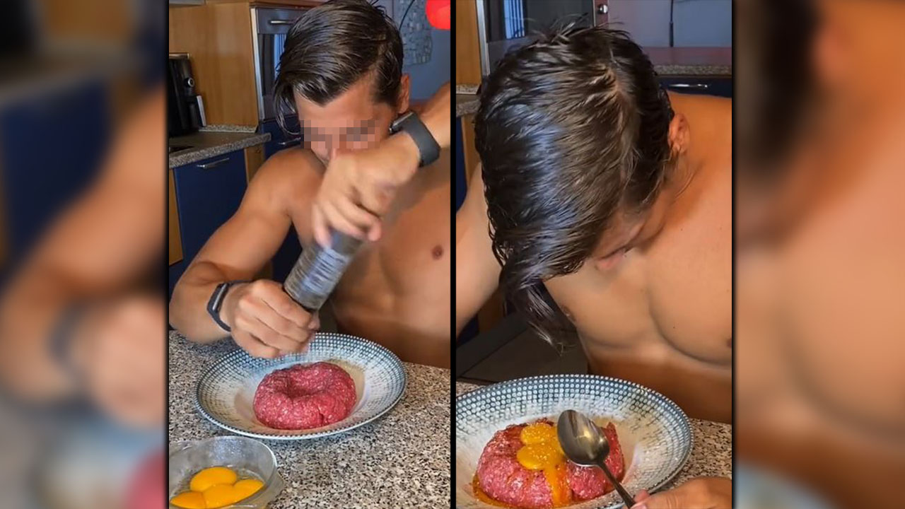 Un influencer fitness publicó un video en su cuenta de Tiktok @sw_gianpiero en donde comió carne cruda con huevo, recomendando a sus seguidores la “receta”, pero este fue criticado.