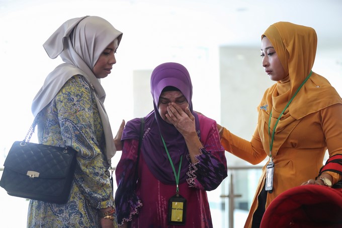 Sarah Nor (c), madre del pasajero del vuelo MH370 Norliakmar Hamid