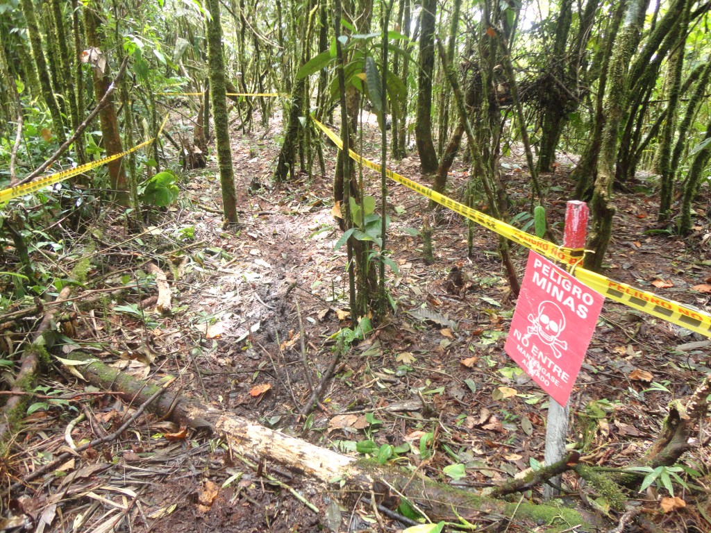 Según el diario La Patria, el 2 de diciembre de 2005 se detectaron 34 artefactos explosivos y se desactivaron 58 más en áreas cercanas a la escuela de la vereda, y se registran 174 víctimas desde 1990 en la zona de Caldas, lo que demuestra el acto alevoso de las organizaciones narco terroristas al momento de llenar los campos de Colombia con estas armas silenciosas y letales.
