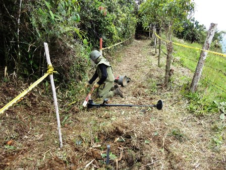 Ingenieros Militares despejan minas antipersona en Samaná, Caldas