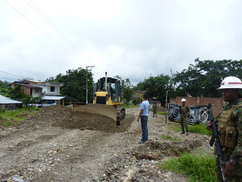 Dos kilómetros de la vía que comunica al municipio de Atrato con el corregimiento de Arenal, están siendo mejorados por los soldados de la patria con el fin de activar esta importante vía y restablecer el transporte pesado y comercial que hace más de ocho años no circula por la zona.