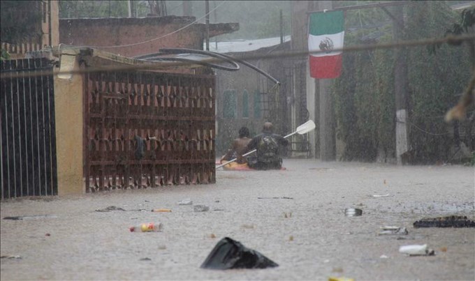 El centro del fenómeno meteorológico tocó tierra este lunes y avanza hacia el interior de México, en dirección oeste-noroeste, con una velocidad de traslación de 17 kilómetros por hora y dejando intensas lluvias a su paso, agregó el CNH en su boletín de las 12.00 GMT.