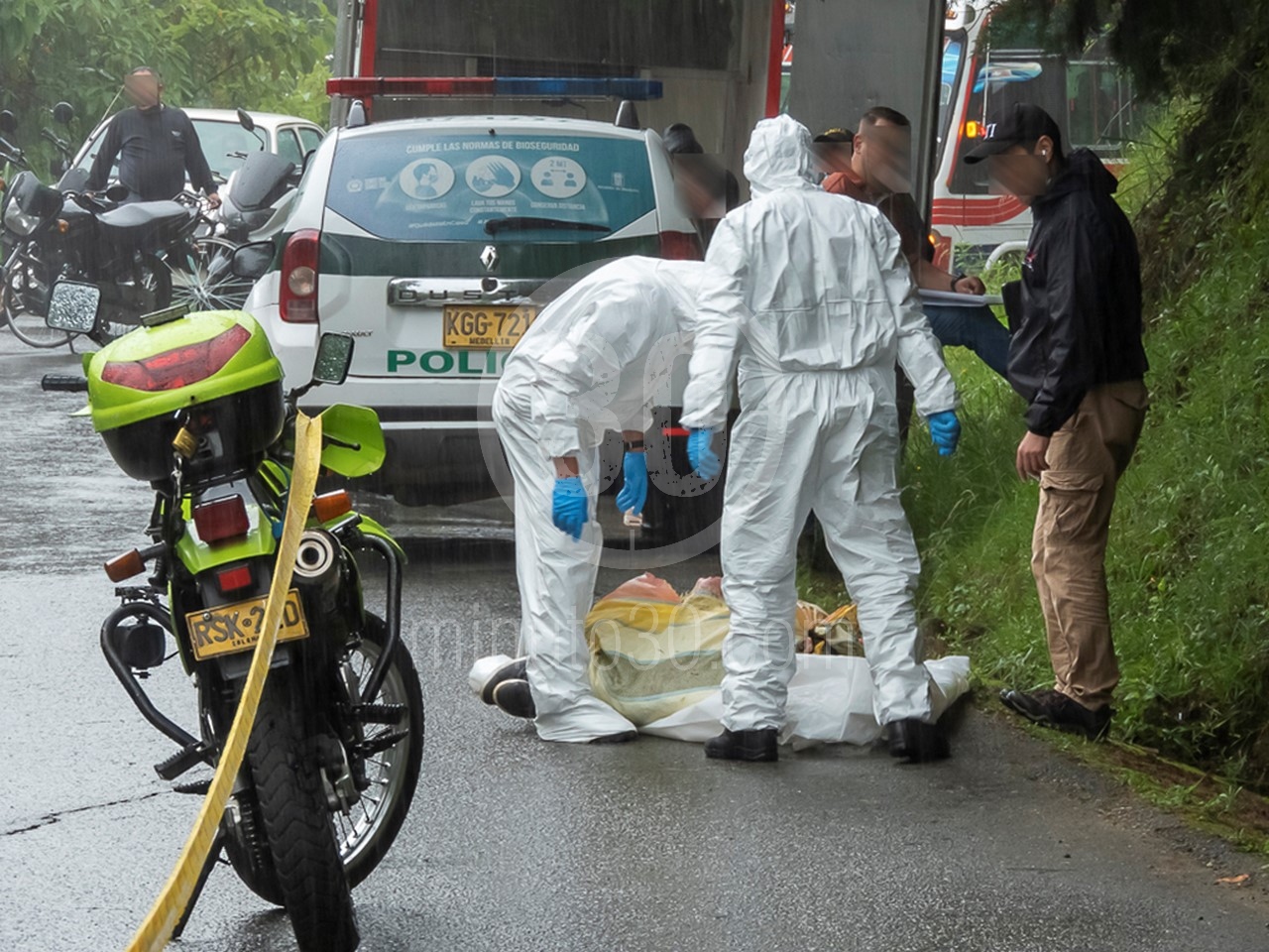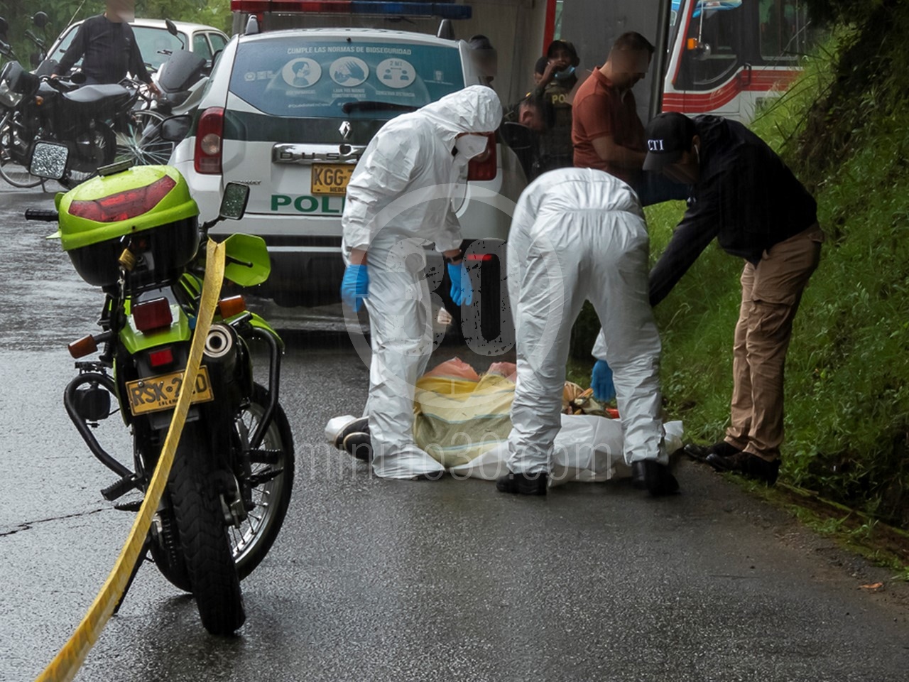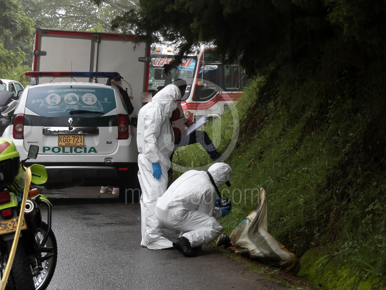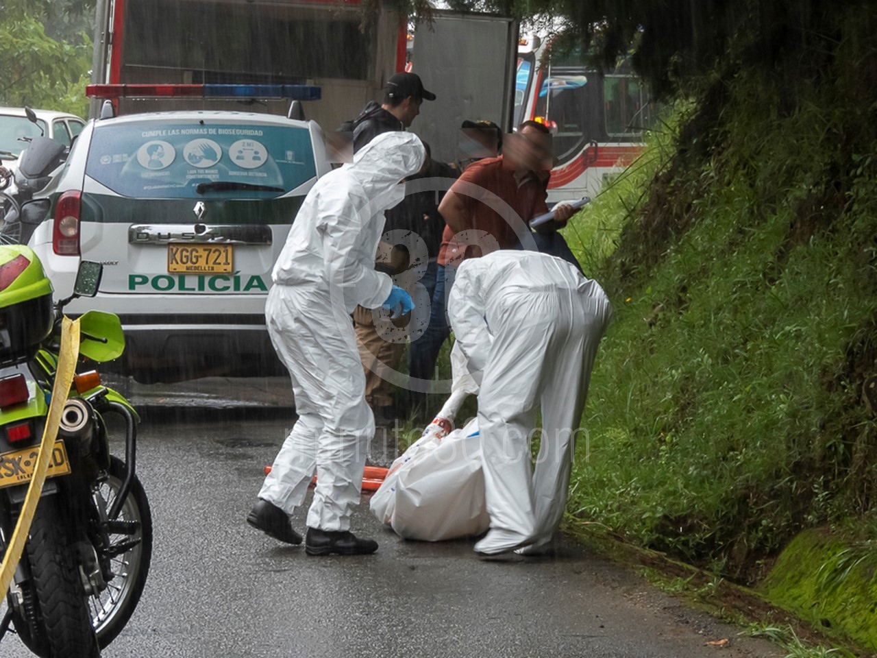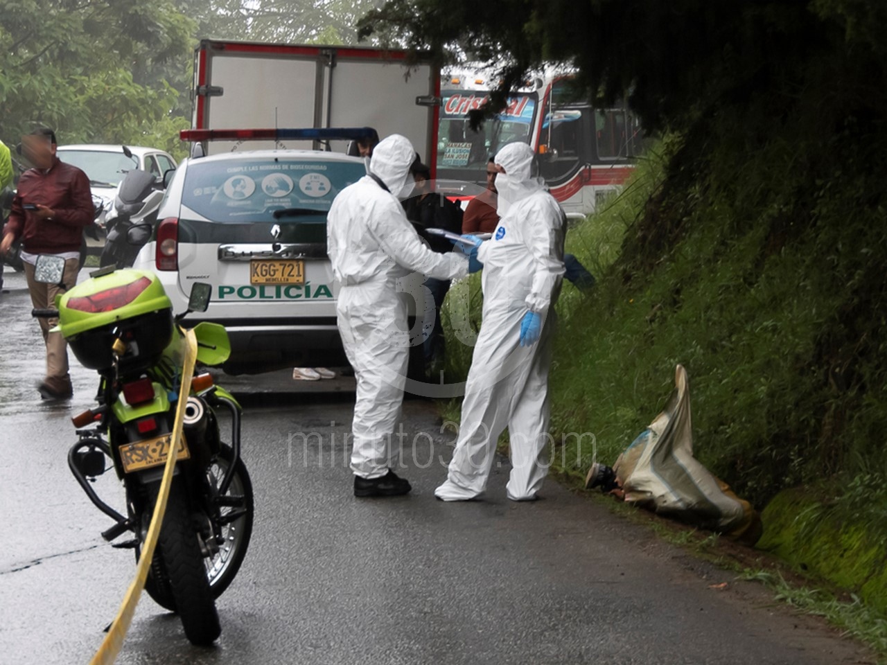Agentes judiciales se desplazaron hasta la vereda Yolombo del corregimiento de San Cristóbal para realizar la inspección técnica del cuerpo que encontraron en la mañana de este lunes, 6 de junio, dentro de un costal, a un costado de la vía.