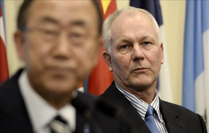 Ban Ki-moon junto al experto químico sueco que lidera la misión de la ONU en Siria para investigar ataque con armas químicas, Ake Sellstrom. EFE/Archivo
