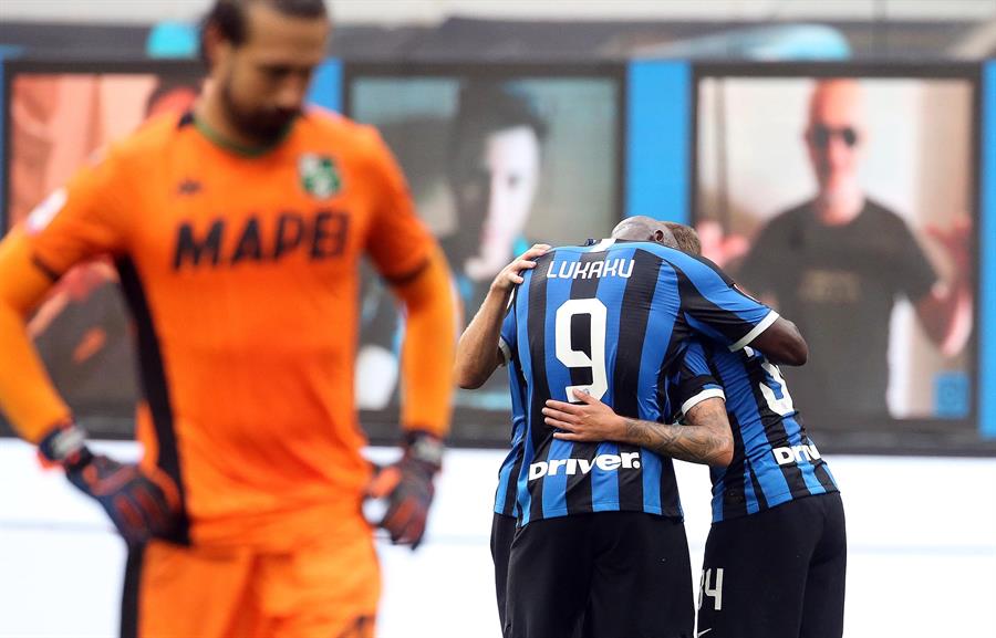 Un San Siro vacío albergó un partido loco, en el que el Sassuolo se adelantó a los 4 minutos gracias a Francesco Caputo y en el que el Inter dio la vuelta al marcador antes del descanso con un penalti marcado por el belga Romelu Lukaku y un tanto de Cristiano Biraghi, a pase de un brillante Alexis Sánchez.