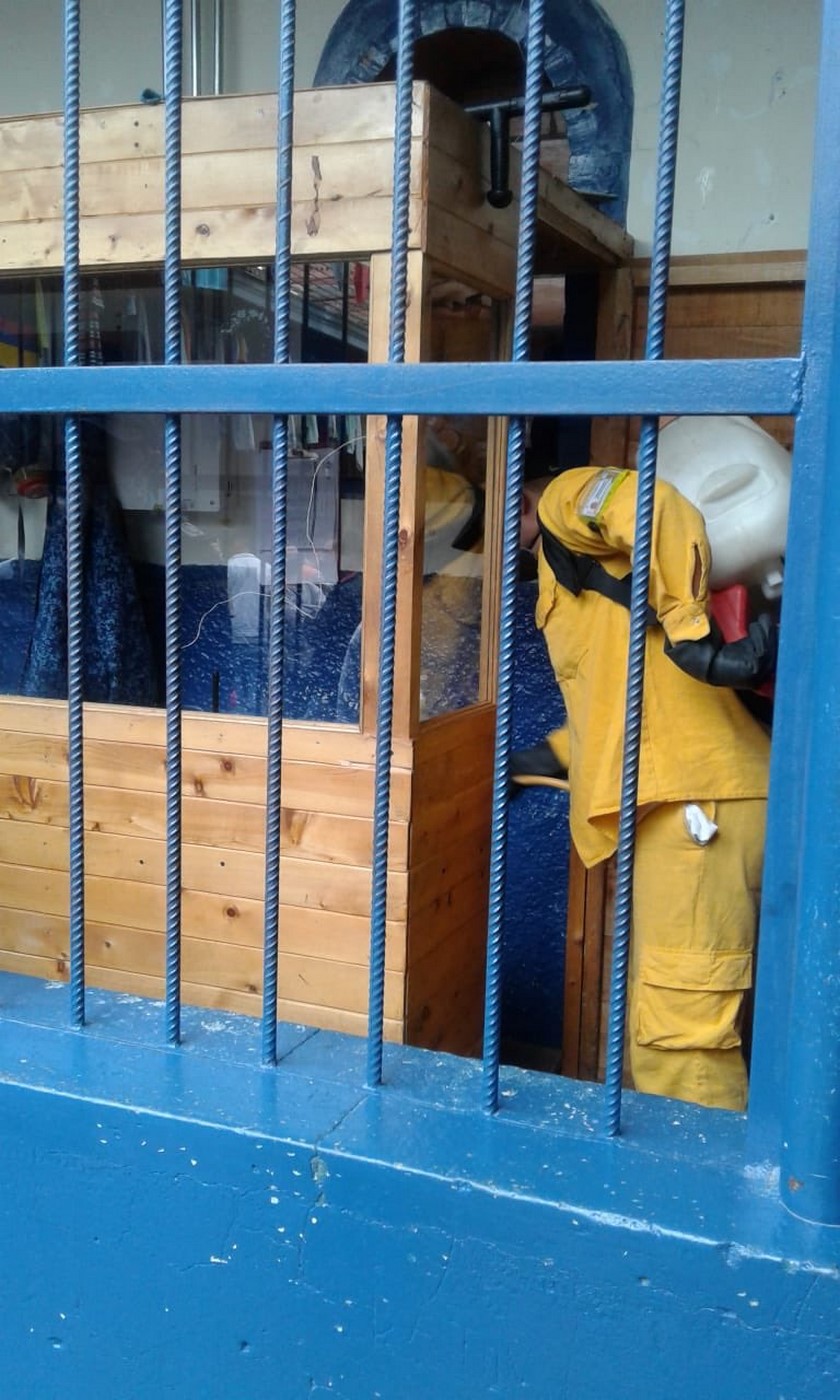 Con un equipo especial los funcionarios y presos desinfectaron las oficinas, las celdas y los pabellones del centro de reclusión para prevenir el contagio del coronavirus.