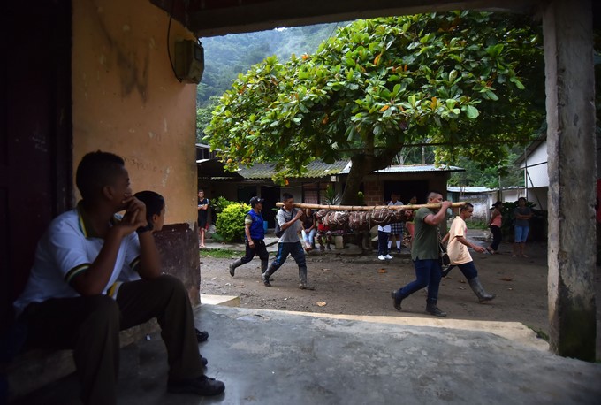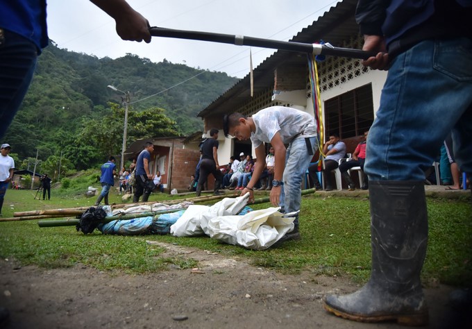 Indígenas transportan los cadáveres de algunas de las víctimas de una explosión este viernes en Dagua