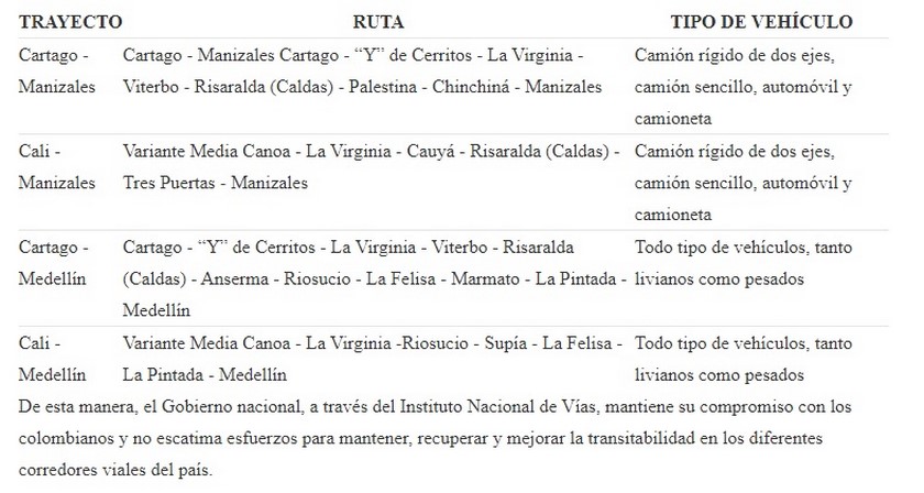 Mientras se da apertura a la vía, se recomienda a los usuarios que transitan por este corredor tomar las siguientes rutas alternas:
