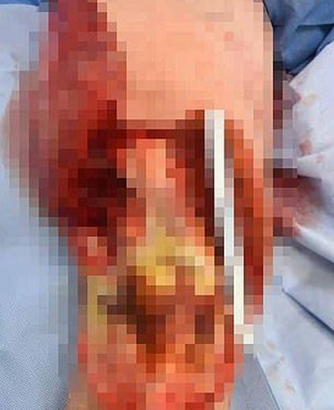 Fue operado para retirar el tejido y músculo quemado, luego de dos días de recuperación fue sometido nuevamente al mismo procedimiento y en este le retiraron la rótula, la cual se había comenzado a descomponer, finalmente decidieron amputarle la pierna derecha por encima de la rodilla.