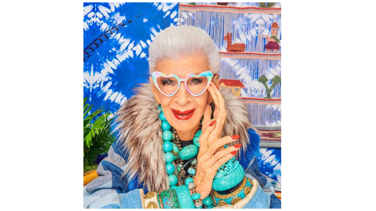 Iris Apfel o “Lady de la Tela” (Lady of the Cloth) como la llamaban en el medio, originaria de Nueva York inició su carrera vinculada al diseño y la moda. Siendo un referente por haber trabajado en la revista Women’s Wear Daily como asistente de ilustradora de vestuario. Su fama se fue acrecentando gracias a las redes sociales donde Iris “la abuelita de la moda”, se ganó el corazón y espacio entre los expertos de moda además de fashionistas.