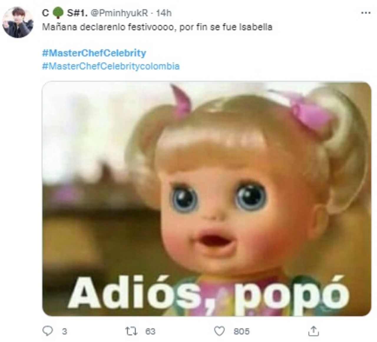 Por su parte, Chicho Arias, Carlos Báez y Estiwar G, se encontraban en el balcón con el puesto asegurado entre los seis mejores cocineros de esta temporada. Pero algunos dejaron más de un meme por la reacción luego de que dieran el nombre de Isabella.
