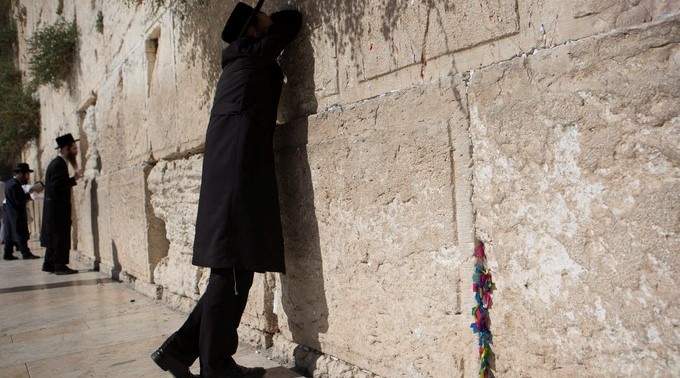 Un judío ultraortodoxo reza en el Muro de las Lamentaciones