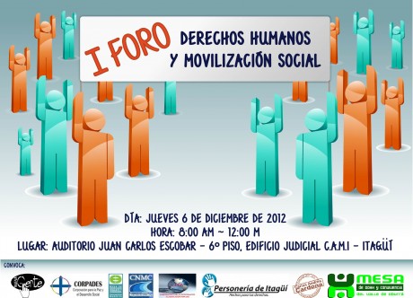 En el marco del 1er Foro Metropolitano de Derechos Humanos y Movilización Social se dieron cita el Municipio de Itagüí personalidades que luchan por preservar y acatar los derechos humanos que permiten que el respeto, la tolerancia y la libertad sean puntos a tejer por una mejor calidad de vida para todos.
