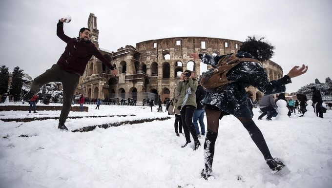 Italia ha sido azotada por una ola de frío siberiano que ha dejado intensas nevadas en localidades como Roma o Nápoles, provocando importantes problemas en los transportes y el cierre de las escuelas, al tiempo que ha dejado paisajes espectaculares como en la capital con sus conocidos monumentos cubiertos de nieve.