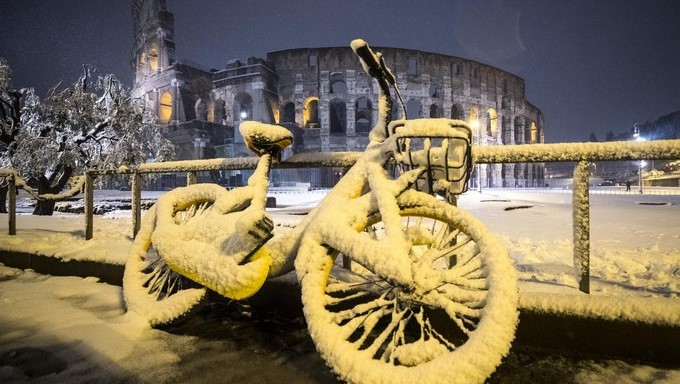 Italia ha sido azotada por una ola de frío siberiano que ha dejado intensas nevadas en localidades como Roma o Nápoles, provocando importantes problemas en los transportes y el cierre de las escuelas, al tiempo que ha dejado paisajes espectaculares como en la capital con sus conocidos monumentos cubiertos de nieve.