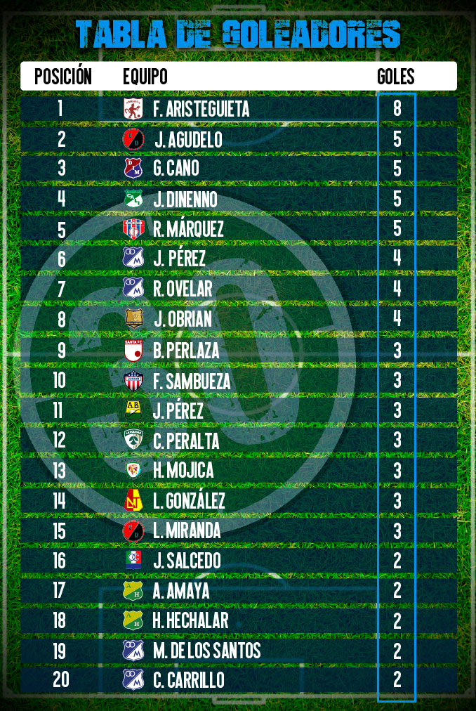 El deportista, oriundo de María La Baja, está a un solo gol de igualar el grupo que persigue al líder del escalafón, Fernando Aristeguieta, que con 8 tantos se encuentra en la cima.