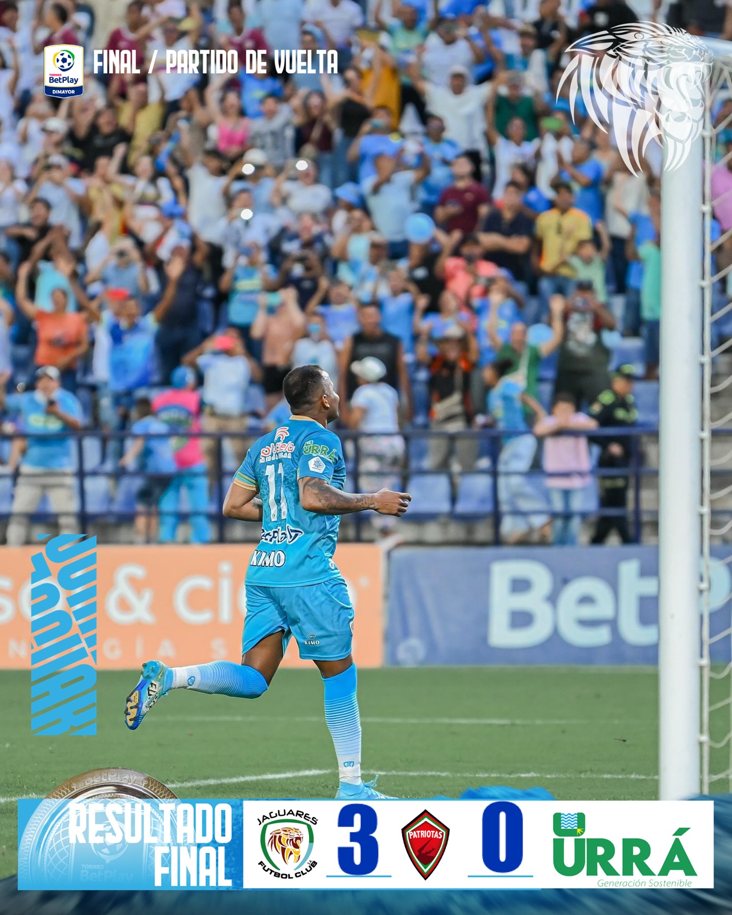 En la final de vuelta, disputada en el estadio Jaraguay, el equipo de Montería se impuso por tres goles a cero sobre Patriotas.