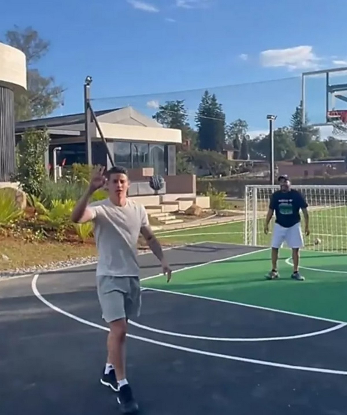 A través de sus estados de Instagram, el futbolista colombiano dejó claro que tiene estado físico para entrar a una cancha. James Rodríguez aparece jugando baloncesto de manera aficionada con amigos.