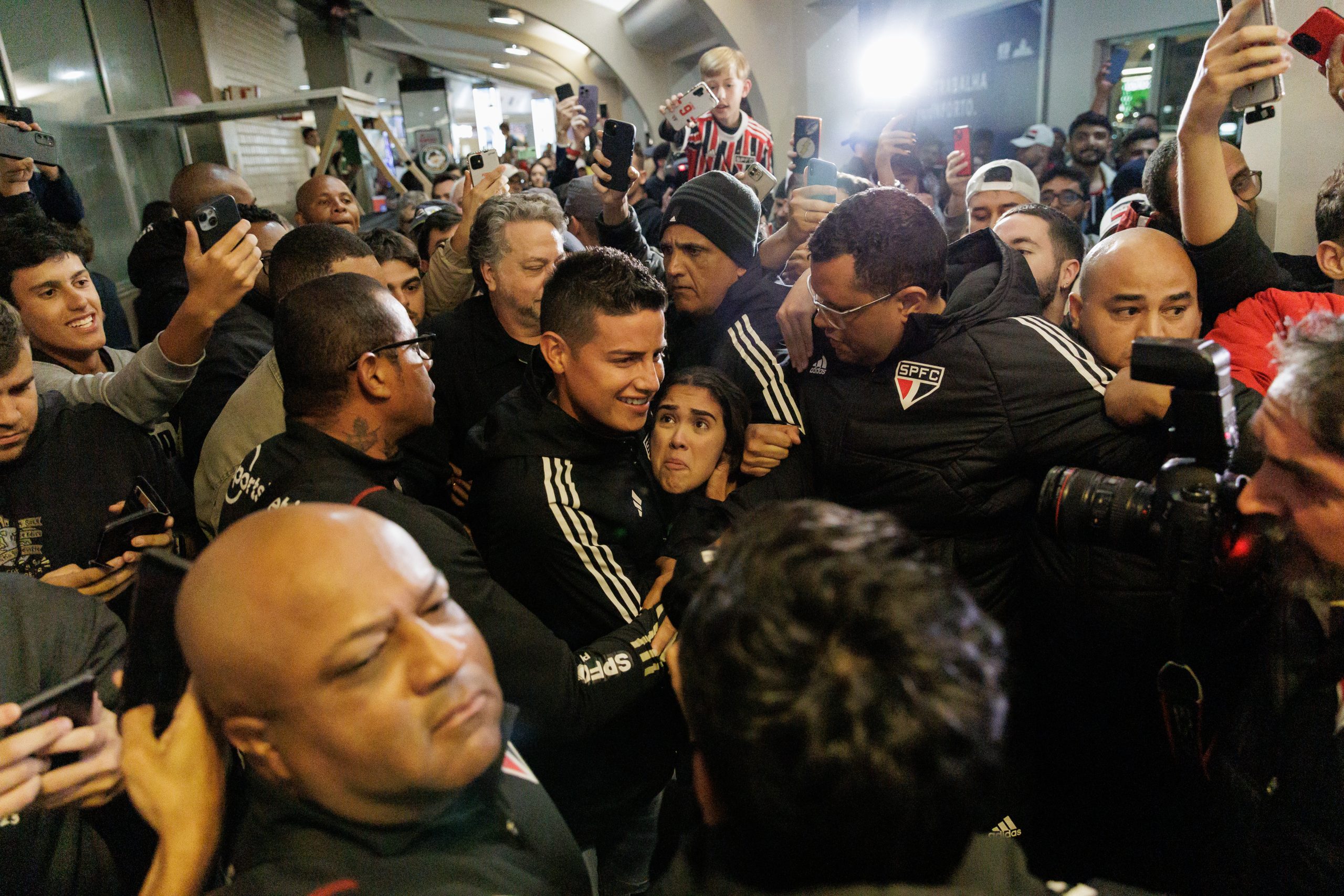 Sao Paulo, 30 jul (EFE).- El centrocampista colombiano James Rodríguez fue recibido este domingo entre vítores y cánticos por decenas de hinchas del Sao Paulo en el aeropuerto de Congonhas, en Brasil, donde comenzará una nueva etapa tras rescindir en abril su contrato con Olympiacos.