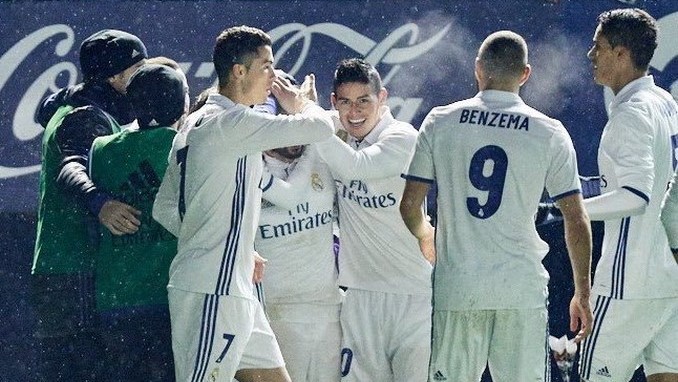 El delantero galés del Real Madrid Gareth Bale (c) celebra la victoria de su equipo ante el Deportivo Alavés. EFE/Archivo