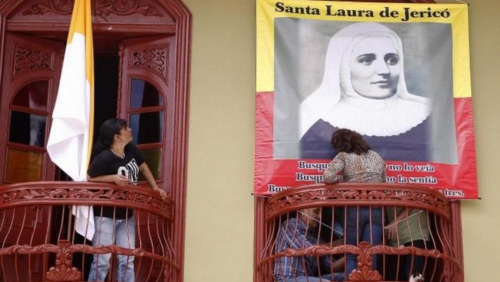 Jericó está vestido de fiesta, y no es para menos, el pueblo natal de la primera santa colombiana, la Madre Laura, no durmió la noche pasada, sino que con luces, música, pendones, oraciones y documentales, esperará con ansia el momento en el que el papa Francisco lleve a los Altares a la Santa Laura de Jericó.