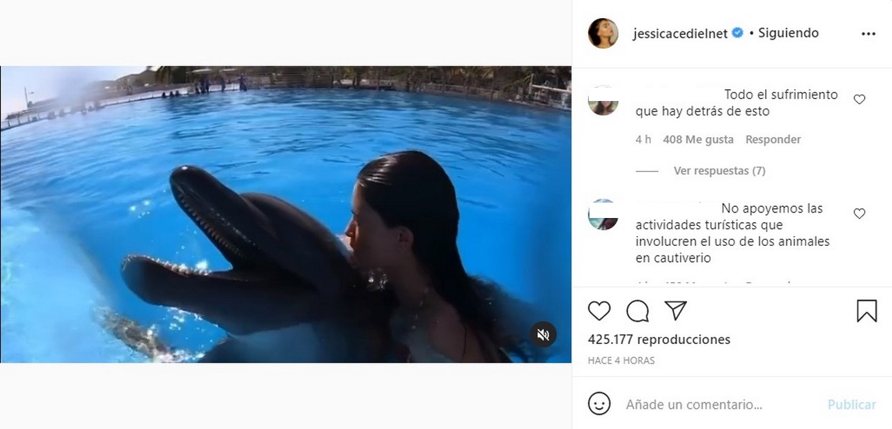 Aunque Jessica afirmó que ese momento fue sanador para ella y se veía feliz mientras disfrutaba del animal dentro del agua, internautas piden “no apoyar las actividades turísticas que involucren el uso de los animales en cautiverio”.