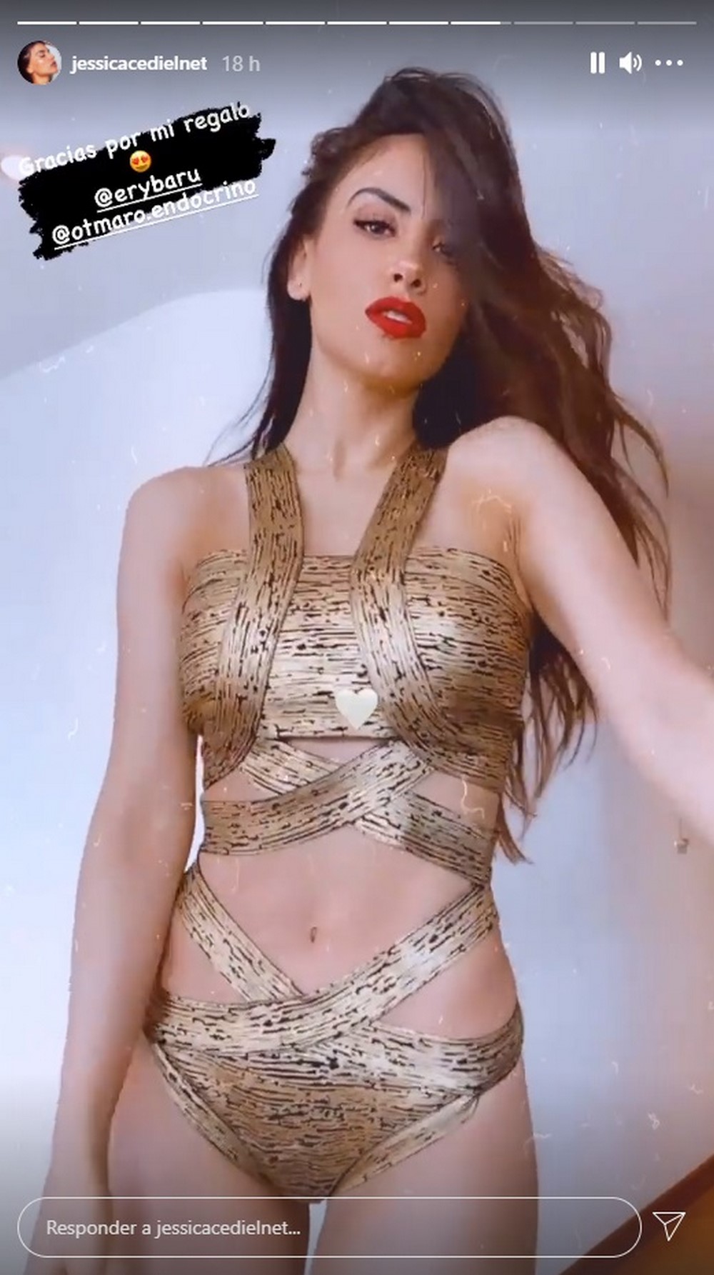 La presentadora Jessica Cediel le mostró a sus seguidores un body de color dorado que le regalaron, a través de sus estados de Instagram lo modeló. Muchos de sus fans le dejaron coquetos mensajes y admiraron su llamativo color de labios.