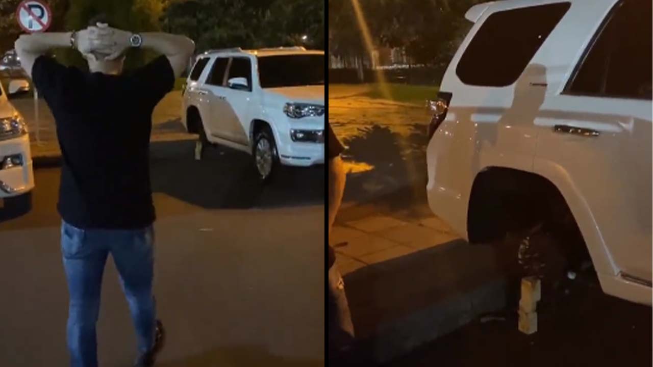 En redes sociales se compartió un video del cantante Joaquín Guiller, en donde muestra indignado como le robaron las llantas de sus autos.