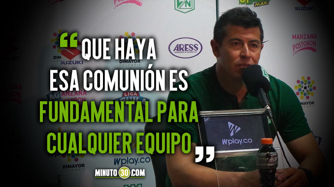 El entrenador considera que “esa comunión es fundamental para cualquier equipo” y lo será de nuevo el próximo jueves, cuando el conjunto ‘Verdolaga’ recibirá a Colo Colo, en el cierre de la fase de grupos de la Copa Libertadores.