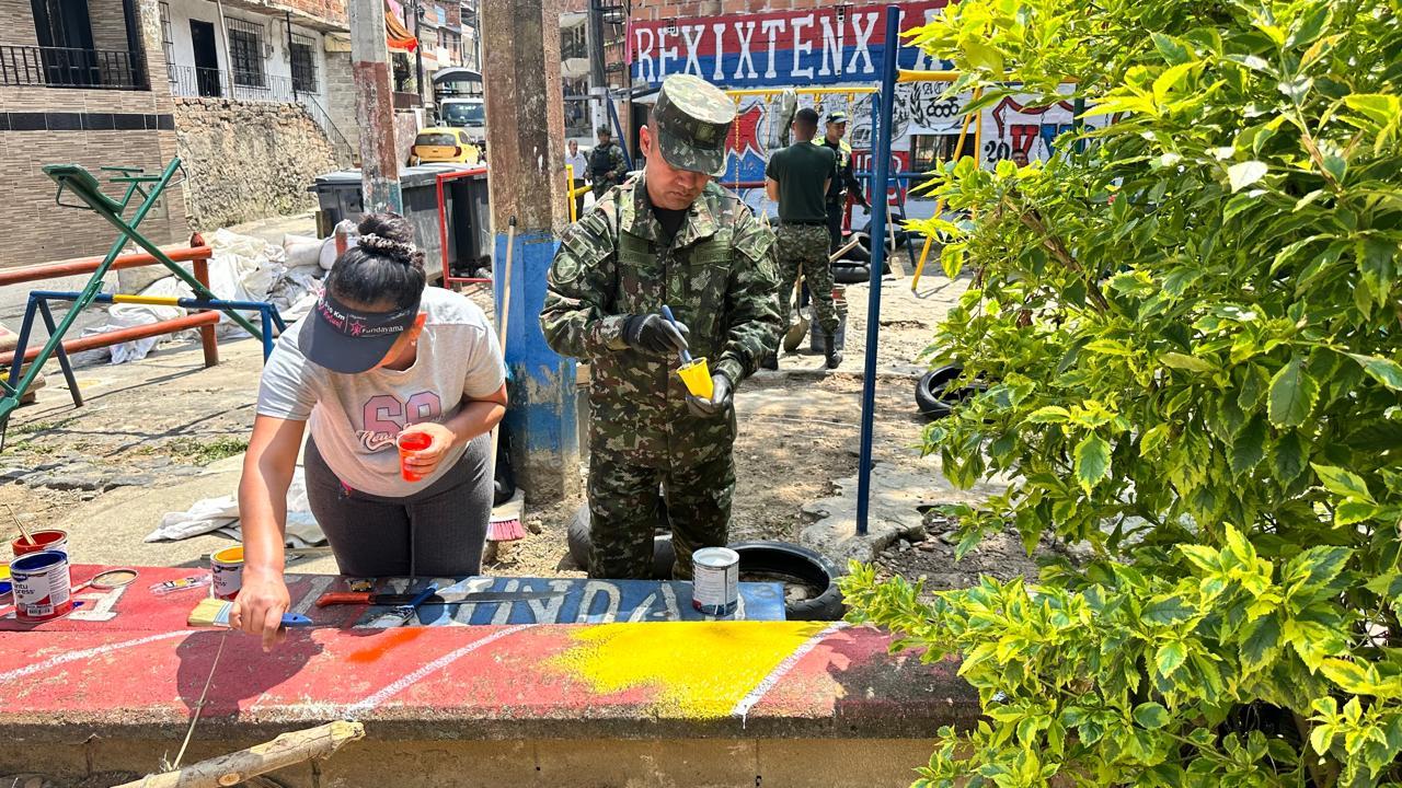 En un esfuerzo por mejorar las condiciones ambientales y la calidad de vida de los habitantes del barrio Santa Lucía Las Estancias, en la Comuna 8 de Medellín, el programa de Fe en Colombia del Batallón de Acción Integral y Desarrollo N.º7, en alianza con diversas instituciones, llevó a cabo una significativa jornada ambiental y de recuperación de espacios.