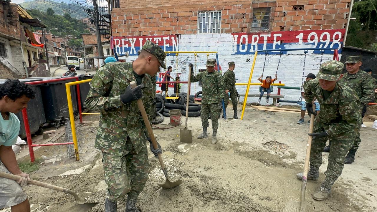 La iniciativa, que contó con el respaldo del Batallón de Policía Militar N.º4, la Policía Nacional, la Junta de Acción Comunal del barrio Santa Lucía Las Estancias y la Alcaldía de Medellín, se centró en la recolección de una tonelada de residuos sólidos, la siembra de 150 árboles, así como la recuperación del parque infantil, zonas verdes y peatonales del sector.