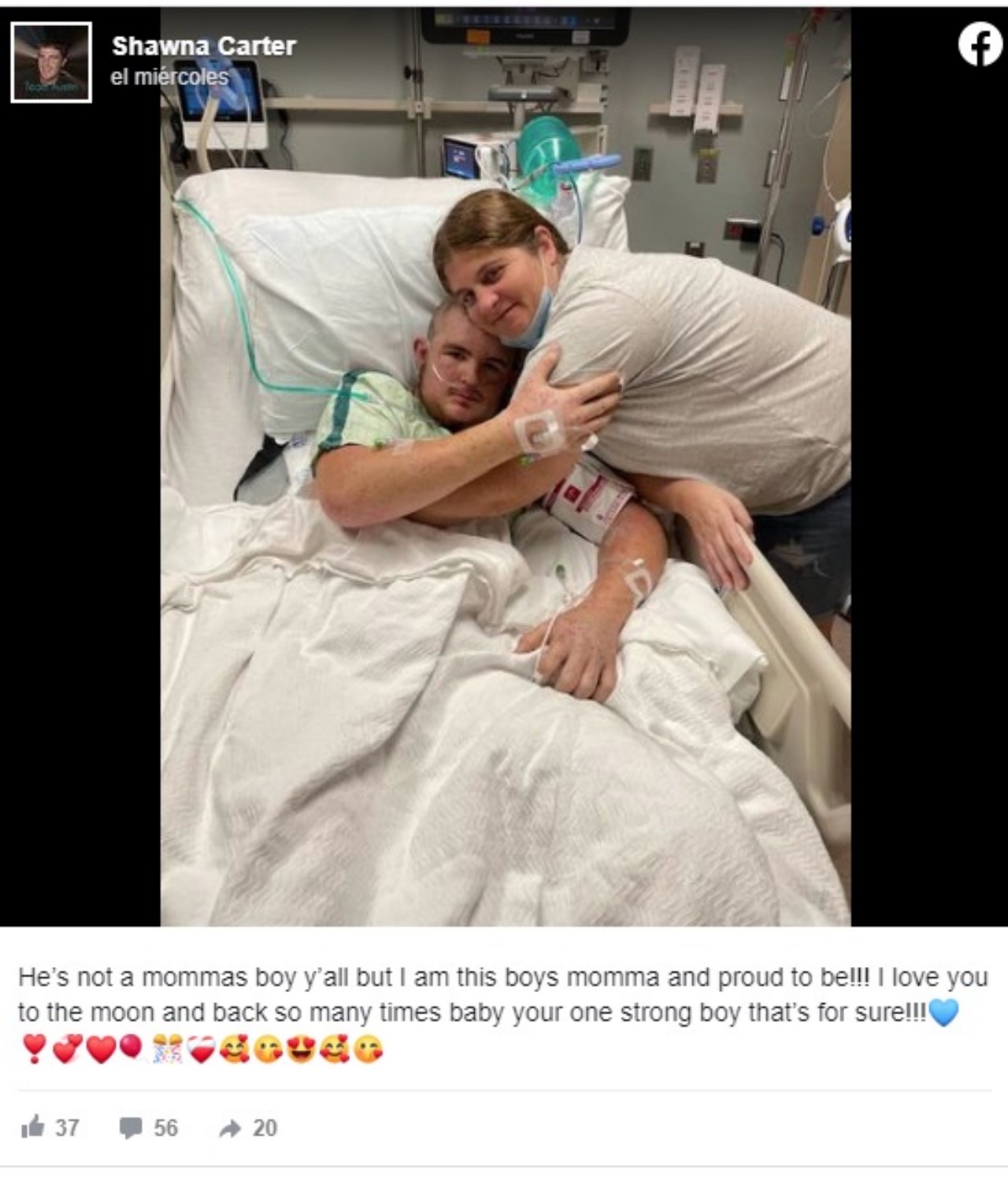 Bellamy estaba en coma inducido desde el martes por la noche, después de que accidentalmente cortó una colmena mientras trabajaba en un árbol. El joven “está en el hospital actualmente con un respirador”, dijo su madre, Shawna Carter, en la página de recaudación de fondos.