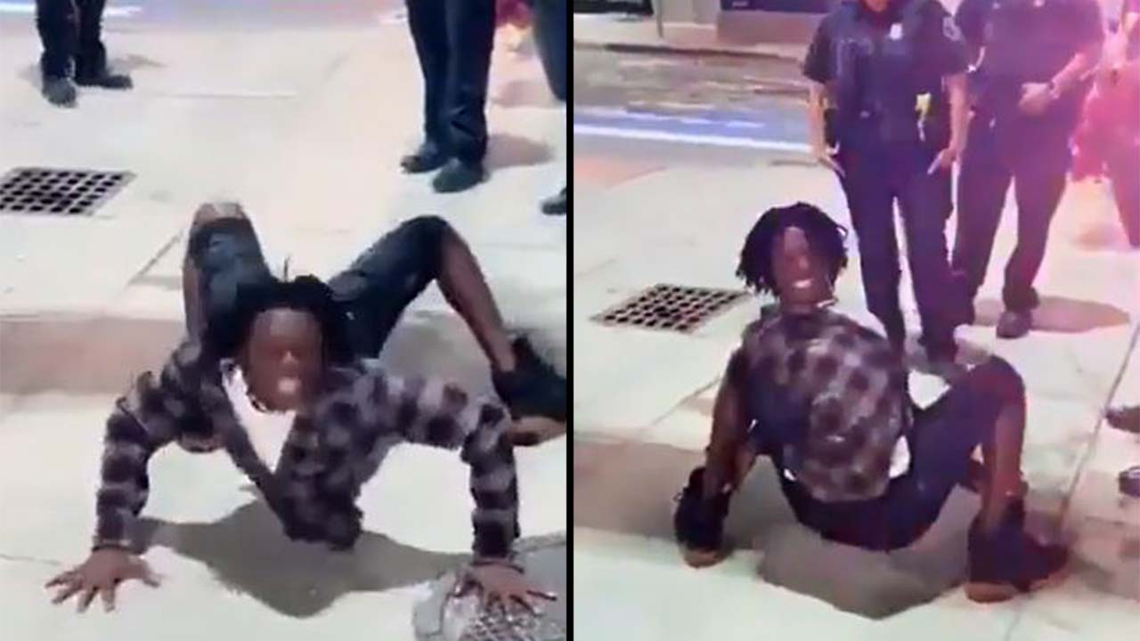En redes sociales se compartió un video del momento en que joven realizó diferentes contorsiones para impedir que lo requisara la policía de Estados Unidos.