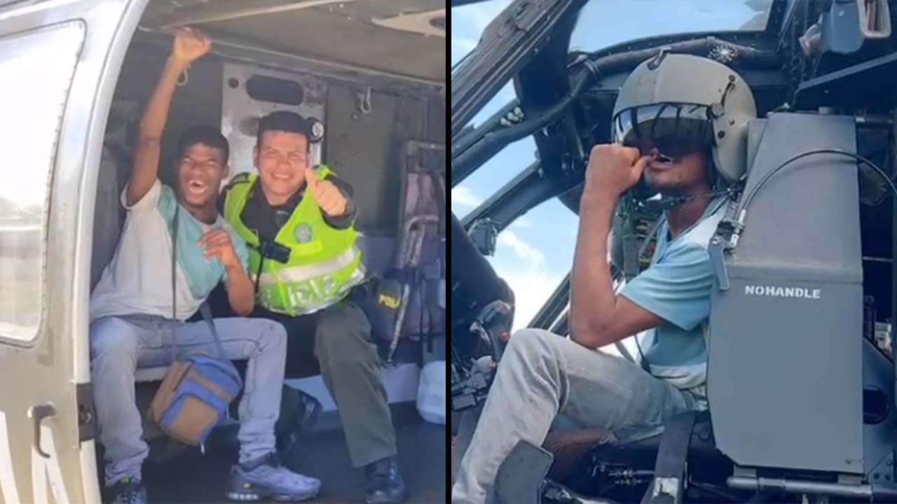 En el video se ve como el joven pudo disfrutar de primera mano, el volar en un helicóptero.