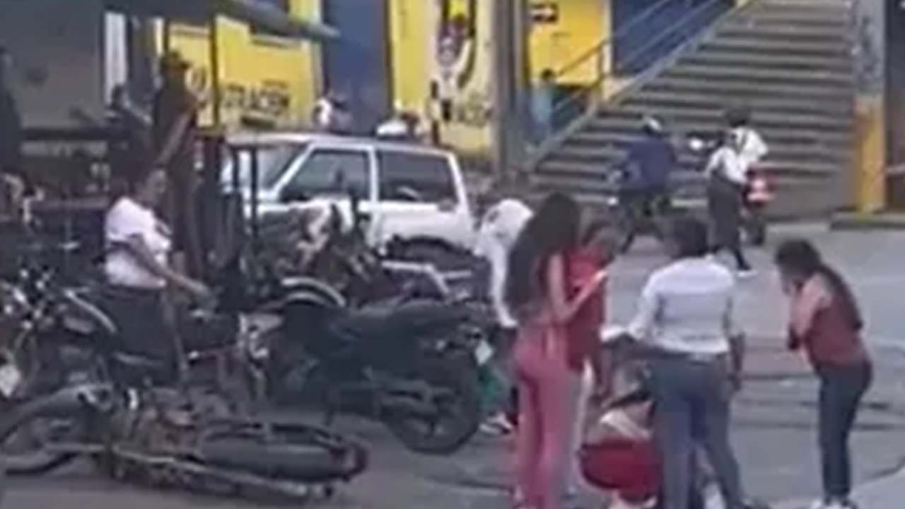 Mientras el agresor huye del lugar, la víctima quedó tendida entre la acera y la vía pública.