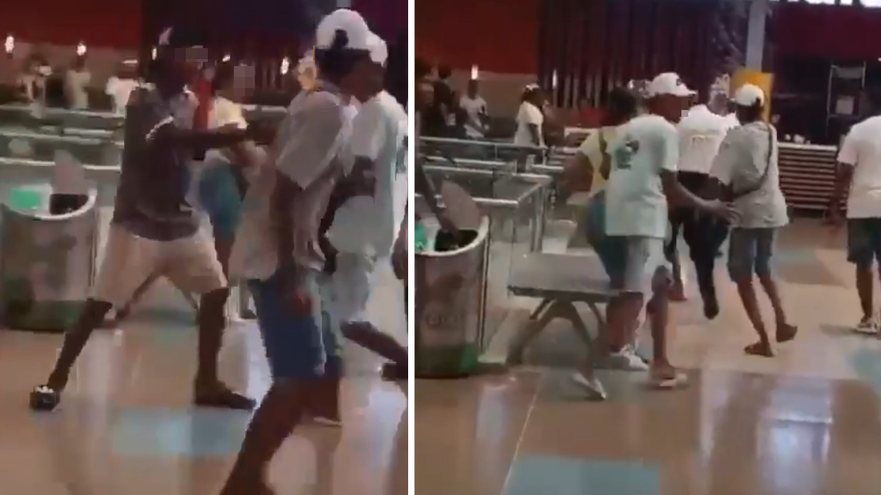 En video quedó registrado el momento en que por lo menos diez jóvenes se dieron puño y para dentro del centro comercial e incluso, se lanzaron algunos objetos.