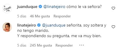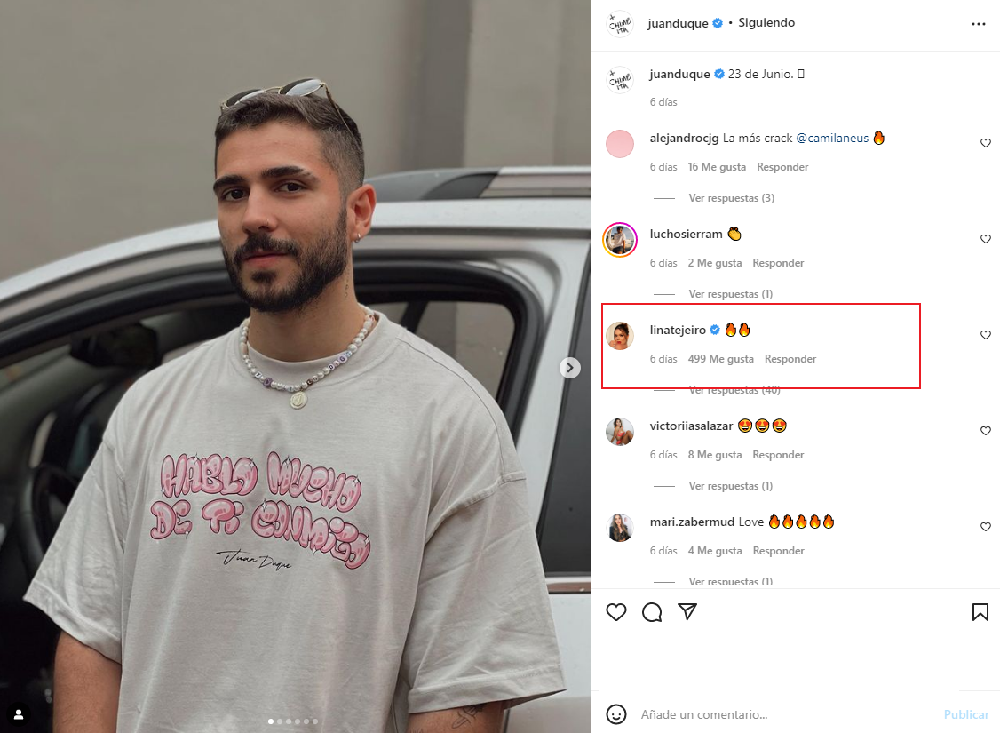 Un nuevo rumor sobre un posible amorío entre el cantante urbano Juan Duque y Lina Tejeiro ha aumentado en los últimos días luego de diferentes pistas y mensajes entre ambos.
