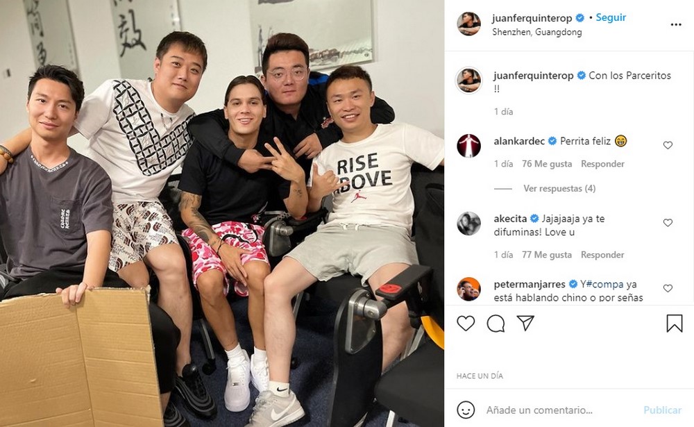 El futbolista colombiano Juan Fernando Quintero publicó una fotografía en la que salía junto a sus nuevas amistades en China. El jugador está por cumplir medio año en territorio asiático para jugar en el Shenzhen.