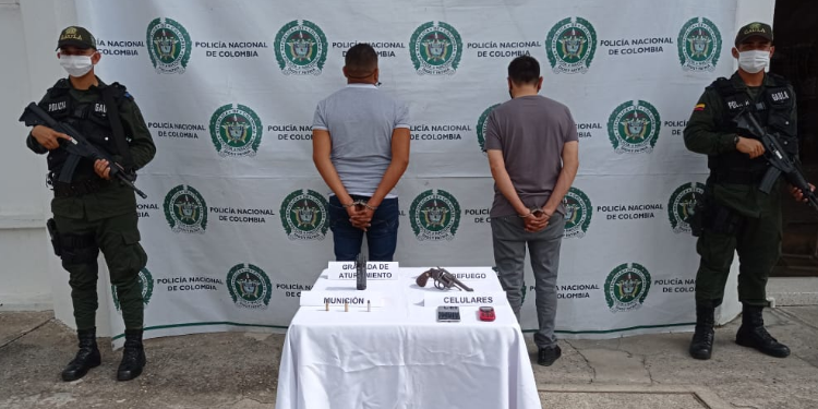 Las autoridades les incautaron dos celulares, un revólver, tres cartuchos y una granada.